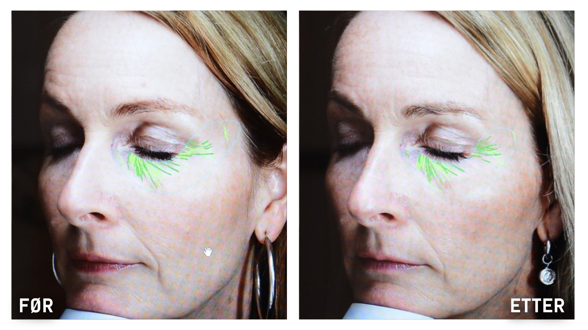 Etter 8 uker målte skanningen en reduksjon på forekjellige rynker og linjer mellom 10-33 %. -Det er et veldig godt resultat, sier Renee.